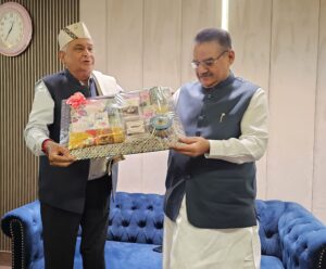 प्रदेश के कृषि एवं कृषक कल्याण मंत्री गणेश जोशी ने अपने जयपुर प्रवास के दौरान शुक्रवार को कृषि पंत भवन में राजस्थान के कृषि मंत्री डॉ. किरोड़ी लाल मीणा से शिष्टाचार भेंट की। राजस्थान के कृषि मंत्री ने महिला स्वयं सहायता समूहों द्वारा निर्मित उत्पाद सुबे के कृषि मंत्री गणेश जोशी को भेंट किए और उत्तराखण्ड के कृषि मंत्री ने उन्हें रेशम काकून से बनी शाल एवं पहाड़ी टोपी भेंट की।