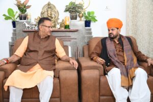 कैबिनेट मंत्री गणेश जोशी ने अपने आवास पर पूर्व सांसद बृजभूषण शरण सिंह का किया स्वागत।